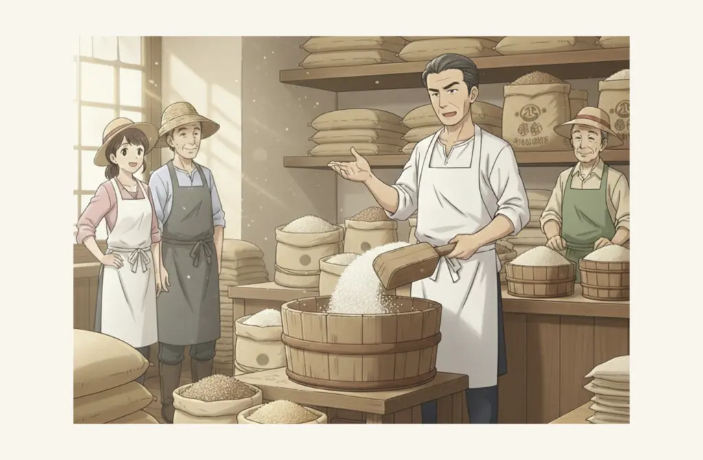 - 例:「違う農家さんのコシヒカリを混ぜたもの」や「去年の米と今年の米を混ぜたもの」などがあります。